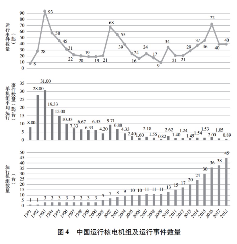 图表:图4 中国运行核电机组及运行事件数量 新华社发