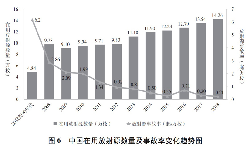 图表:图6 中国在用放射源数量及事故率变化趋势图 新华社发